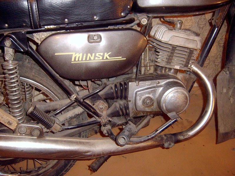 Мотоцикл "МИНСК" очень удобная техника. Лёгкий по массе (и в управлении) . Его можно хранить даже дома (на девятом этаже), он легко входит в стандартный лифт (на дыбах и руль надо откреплять). Жрёт мало бензина, двигатель хорошо тянет и не перегревается. Почти весь срок эксплуатации мотоцикл хранился в тёплом сухом помещении. Пробег 10 тыс. км. Сильно не падал и в аварии не попадал. Документы на него все в наличии !!!